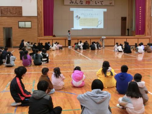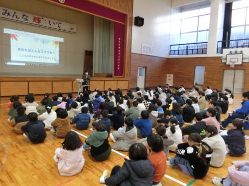 井石先生は、体育館で全校の子どもたちに、「みんなで安心して学校生活を送るにはどうしたらよいか考えまし…
