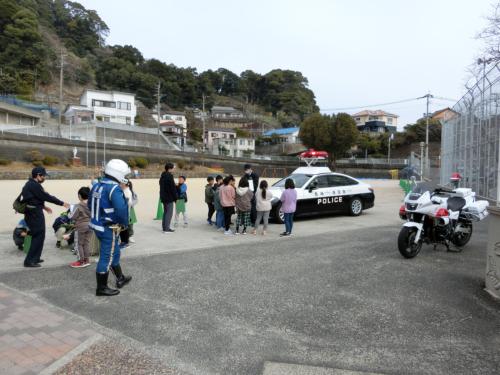 パトカーが来たよ 3年生は社会科で「くらしを守る」の学習をしています。今日は、いつも私たちのくらしを守ってくださっている佐世保警察署の警察官の皆さんが、パトカ…