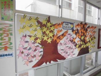 1年間がんばったこと 1回掲示板「つながりの木」には、子どもたちが「この1年でがんばったこと」について掲示してあります。「委員会活動やクラブ活動をがんばった」や「…