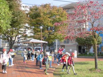 まちたんけん 図書館見学 2年 秋晴れの中、2年生はまちたんけんをしながら図書館をめざして歩きました。ゆっくりと歩きながら、街路樹や公園の木々を見てみると、少しずつ色づき…