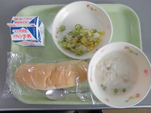 12月3日(水) 今日の給食 牛乳 コッペパン かぶのクリーム煮 じゃこサラダ
