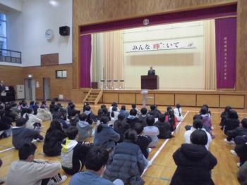 3学期 始業式 2週間の冬休みが終わり、学校に子どもたちの元気な笑顔が声が戻ってきました。今日の始業式では、校長講話の後1年生と6年生の代表児童が作文の発表…