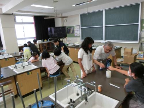 おもしろ科学教室 今日の放課後子ども教室「かがやきクローバー」は久野正明先生を講師にお招きして、「おもしろ科学教室」を行いました。