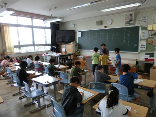 ていねいにかこう 1年生は国語でひらがなの学習をしています。今日はいろいろな線の書き方に気を付けて、学習しました。「とめ」「はらい」「はね」に気を付けながら、…
