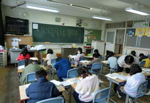 丸付け先生ありがとう 毎週水曜日の朝の「チャレンジタイム」では、1年生と2年生に毎週「丸付け先生」が来てくださっています。子どもたちは「丸付け先生」から、国語や算…