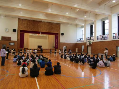 6年生ありがとう集会 今日は校旗伝承式のあと、6年生を送る会「6年生ありがとう集会」を行いました。全校のみんなで〇×クイズを楽しんだあとは各学年の出し物です。歌あ…