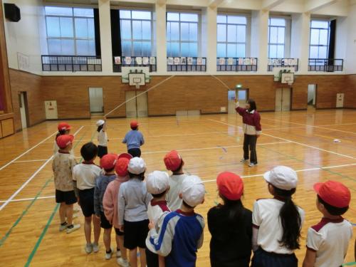 体つくりの運動遊び 2年生の体育は、なわを使って体つくりの運動遊びをしました。短なわを使って両足跳びで長い時間跳び続けたり、長なわを使って全員でリズムよく跳んだ…