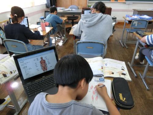わたしたちの体と運動 4年生は理科で「わたしたちの体と運動」の学習をしています。今日は体全体の骨や筋肉のつくりや仕組みについて、一人一台端末を活用して調べました。…