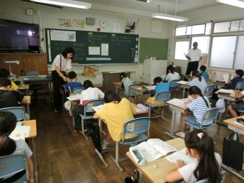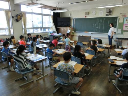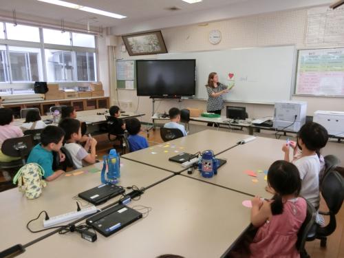 かがやきクローバー(英会話) 今日の放課後子ども教室「かがやきクローバー」は英会話。講師は本校の国際理解指導員としてもご指導いただいている浦喜代加先生です。低学年の子ども…