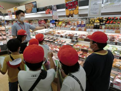 スーパーマーケット見学 3年生は社会の学習で、エレナ相生店にスーパーマーケット見学に出かけました。店長さんに案内いただき、商品を置く場所や並べ方など、お客さんが買い…