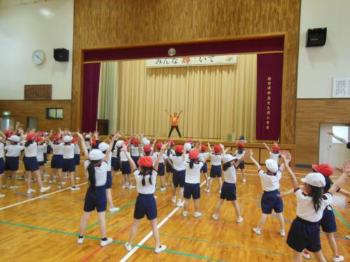 オオクボ ピース 今年の運動会の表現は、大久保小学校創立100周年を記念して創られた「オオクボ ピース」を全児童で踊ります。今日はビーフラット代表の迎秀子先生…
