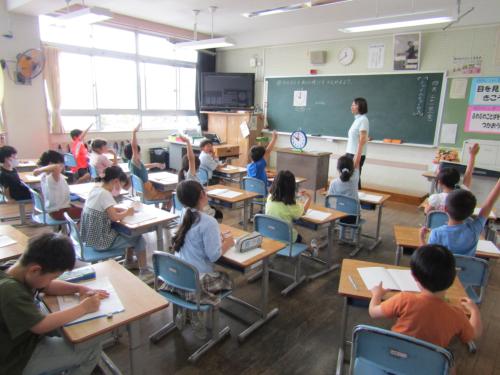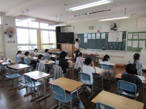 授業参観 今年度はじめての授業参観。子どもたちは、いつもとちょっぴり違う雰囲気の中、おうちの人の前で、はりきって学習に取り組んでいました。