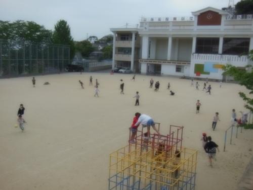 昼休み 昼休みになると運動場に出て、元気に遊ぶ子どもたち。大久保小学校の子どもたちは昼休みも笑顔いっぱい輝いています。