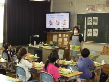 給食指導 3年 今日は赤崎小学校の栄養教諭、古川先生が来校され、3年生の給食の時間に食事のマナーやよく噛んで食べることなどについて、お話をしてくださいまし…