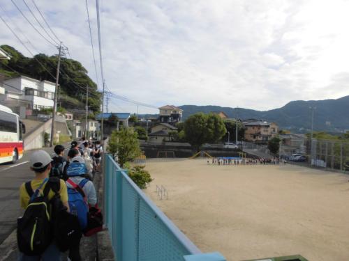 6年生 出発! 1年生 小動物教室 日頃の行いがとても良いからなのか、6年生は秋晴れの中、修学旅行に出発しました。玄関や運動場には、下級生全員がお見送りに出てきました。「大久…