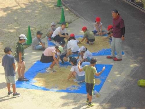 ぼかし肥料づくり 4年 4年生は総合的な学習の時間の活動で、環境学習に取り組んでいます。今日は米ぬかを使った有機肥料「ぼかし」づくりにチャレンジしました。日中はとて…
