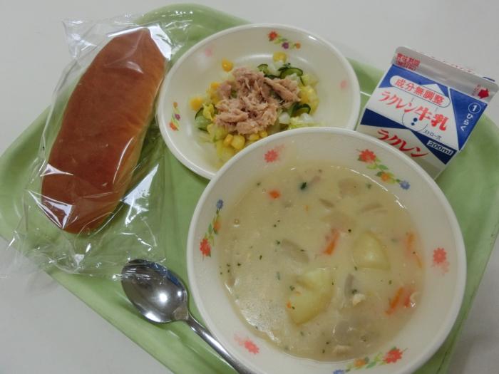 1/22(月)今日の給食 ぎゅうにゅう コッペパン こめこととうにゅうのポタージュ はくさいサラダ(ツナ)