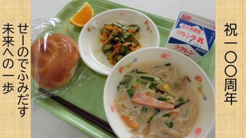 12/11(月)今日の給食 ぎゅうにゅう はちみつパン ラーメン ちゅうかあえ オレンジ