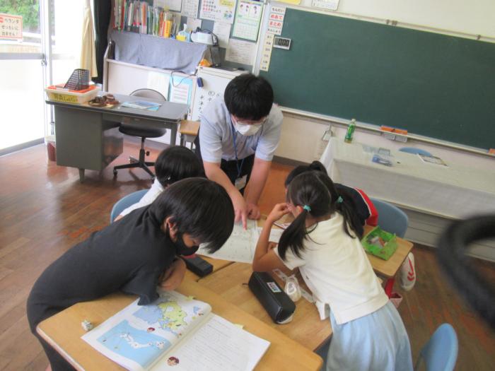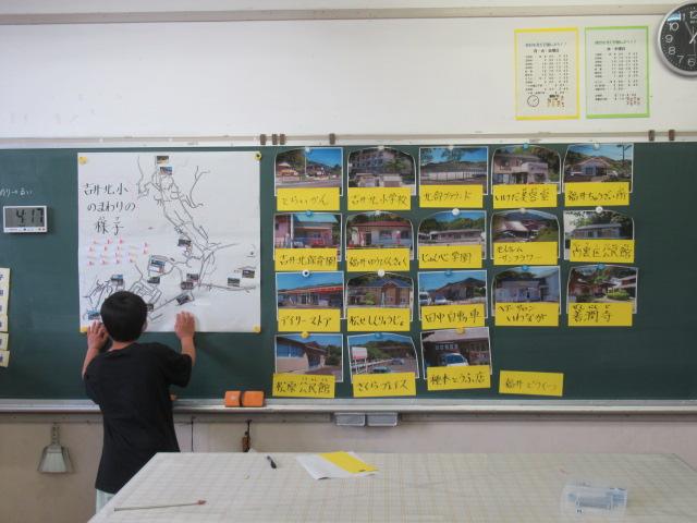 地図の勉強しています 社会の学習で、吉井北小学校周辺の様子を絵地図で表しています。