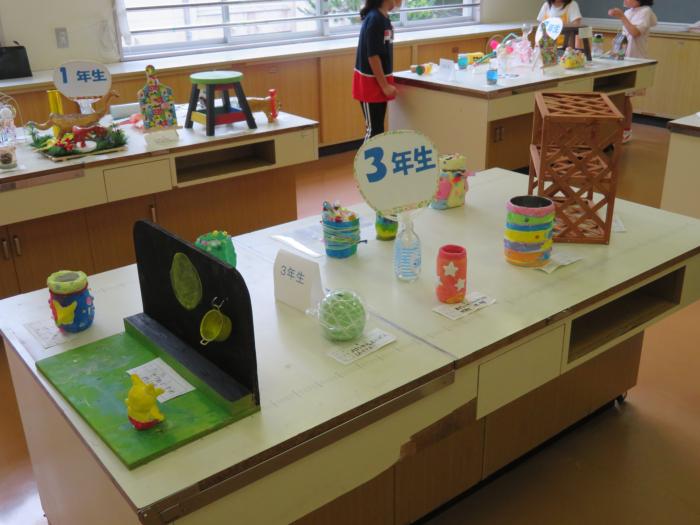 みんなの作品がそろいました! 3年生全員の作品が勢揃いし、作品展で飾られています。
