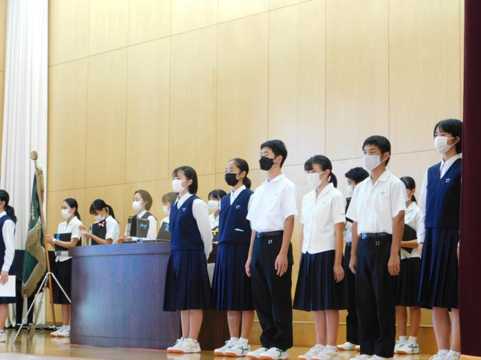 生徒会役員任命式と引継式がありました 本日(10/15)6校時に体育館で生徒会役員任命式と引継式がありました。任命式では、新生徒会長の網田会長を含む本部役員が江頭校長より任命され…