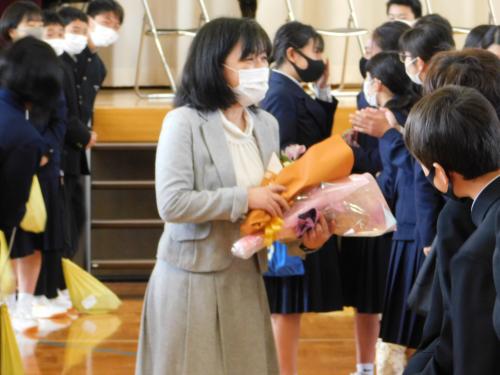 田先生のお別れ式をしました 本日(3/5)、全校朝会で家庭科の非常勤講師 田 未央先生のお別れ式をしました。田先生は、本校に家庭科専門の教員がいないため、火・金曜日…