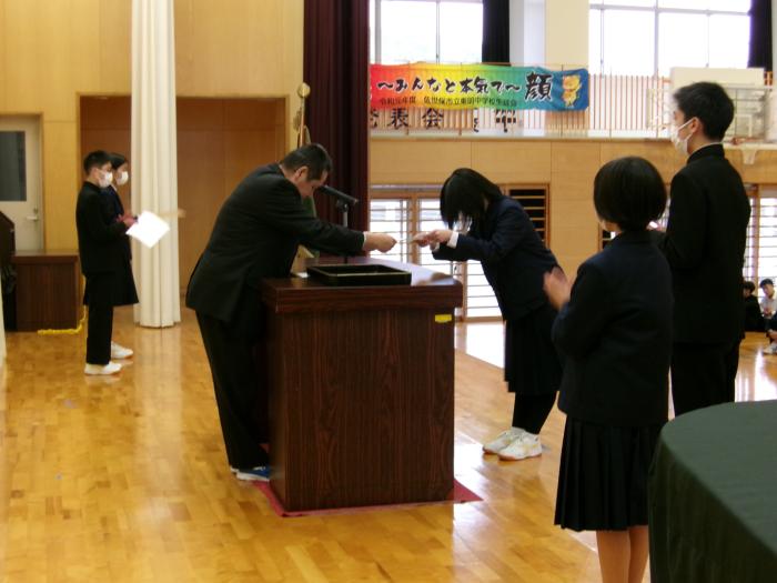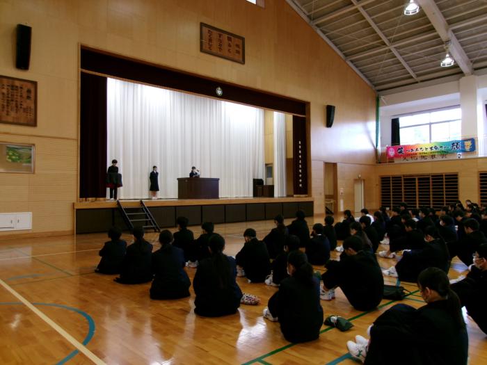 生徒会役員任命式・引継ぎ式 3学期がスタートして、約1週間が過ぎました。今日は新生徒会役員の任命式と引継ぎ式が行われました。これまで生徒会役員として頑張ってきた本部役…