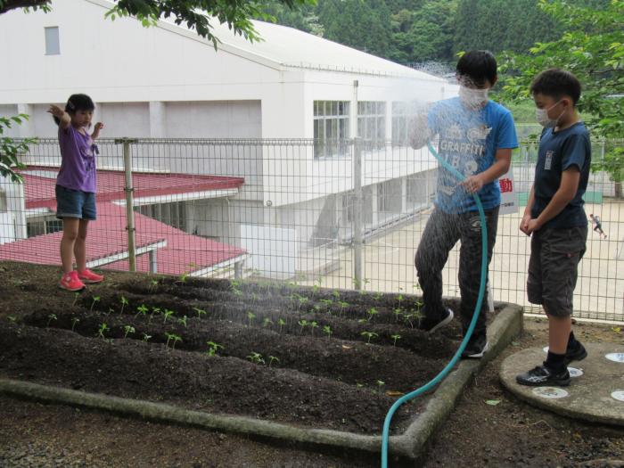 人権の花 5年生の子どもたちが「人権の花」ひまわりを育てています。