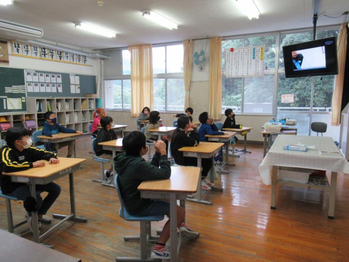 全校集会はリモートで 後期も前半が終了し、24日は冬休み前の最後の学校でした。