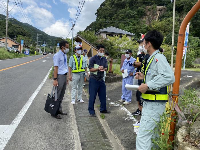 通学路点検 8月31日、地域の地区長様、PTA西田会長・江口副会長様、佐世保市教委、県北振興局、江迎署、県道路維持課の皆様にお越しいただいて、通学路の安…