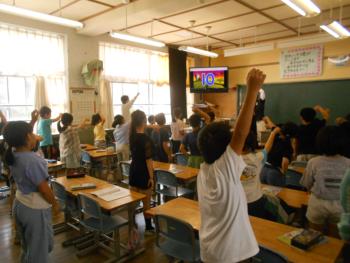 3年生外国語活動 5月27日(火)4校時 3年生が,ALTのサムエルハニシ先生と外国語の学習をしました。1〜20までの数をダンスをしながらカウントしています…