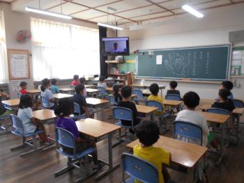 一学期終業式を迎えました。 7月23日(水)一学期終業式を迎えました。1年生は72日,2年生〜6年生は74日の一学期でした。各学級と放送室をリモートでつなぎ,校長先生…