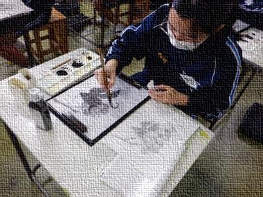 水墨画 3年生の美術を参観しました。水墨画でぶどうの絵に挑戦中でした。初めてなので、墨の薄め具合や筆に含ませる分量が難しく、かなり苦労している様子…