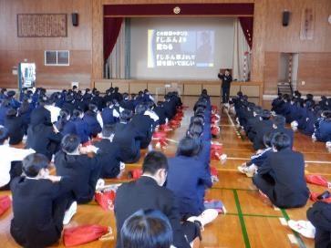 学年集会 2学年の学年集会がありました。F先生から、当たり前のことを当たり前にすることの大切さについて、教育哲学者の森信三先生の言葉「時を守り、場を…