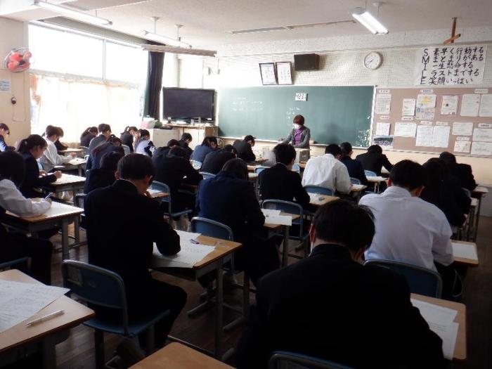公立入試 公立高校の前期選抜が3日後に迫りました。その1か月後には後期選抜を控えています。今日は公立入試の事前指導が行われました。皆、神妙な面持ちで…