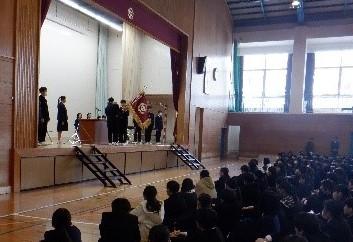 継承 9日(火)に校旗引継ぎ式が行われました。旧生徒会役員一人一人が思いを語る中で、人を動かすことの大変さを味わい、プレッシャーに押しつぶされそ…