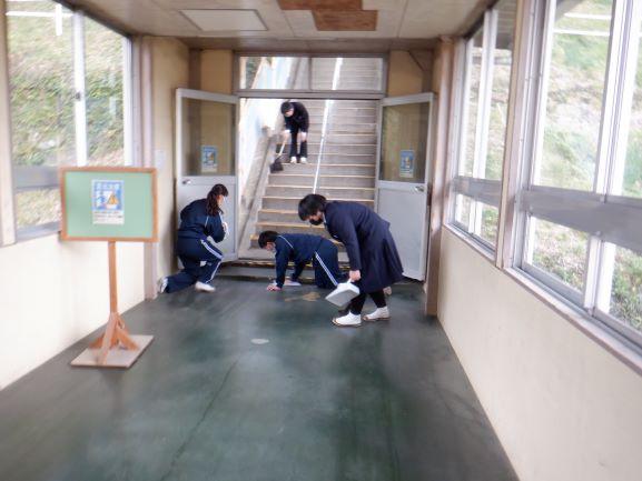 ひたむき 掃除の風景です。大野中学校は、建物が多く、本館以外に理科室棟や技術室棟、家庭科室棟、美術・音楽・視聴覚教室棟に体育館と掃除をする場所がたく…