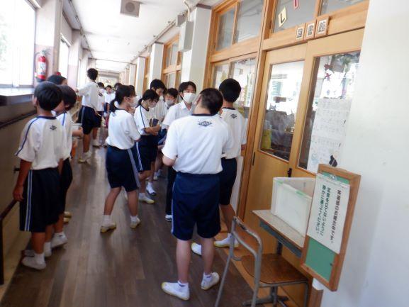行列 お昼休みの図書室前です。返却用の本を持った生徒が開錠を待っています。大事そうに抱えている本を見ると、一人で5冊という強者がいました。図書室…