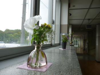 フラワーボランティア古賀先生 運動会の前日に、フラワーボランティアの古賀先生がお花を飾ってくれました。雨が降る前に、庭の花を摘んでおいたのだそうです。