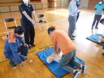 AED研修(職員) 職員研修として「AED・エピペン研修」を行いました。消防署の方にご指導いただきながら、水泳が始まる前に、AEDの使い方を学びます。また、ア…