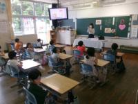 交通安全教室 同じ13日の午前中に1年生から3年生を対象に、校内で交通安全教室を開きました。江迎警察署の交通課長様をお迎えし、DVDにて横断歩道の渡り方…