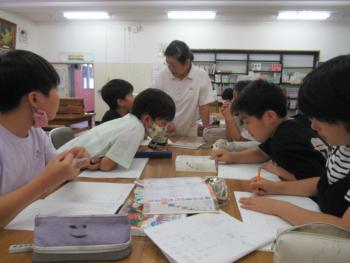 研究授業(5年) 学校では、職員の指導技術向上のため、自主的な研修を年間を通して行っています。今日は、研究主任の5年担任の授業を、模範として見せていただき、そ…
