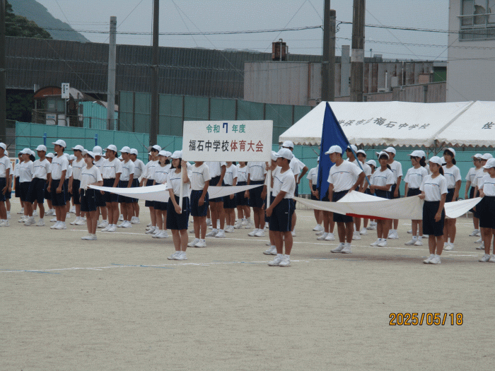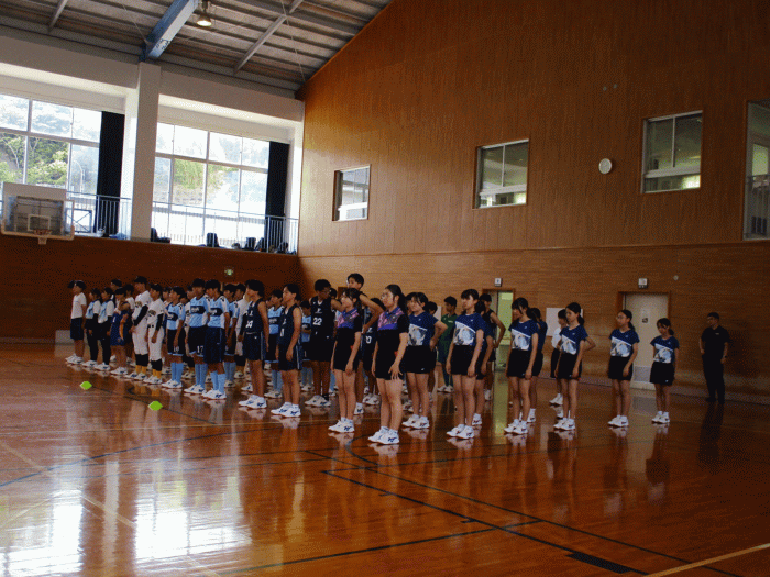 市中体激励式 〜悔いなく全力を出し切って、頑張ってこい!〜 5月22日木曜日に市中体激励式がありました。市中体に出場する選手たちがユニフォームに身を包み、真剣な面持ちで激励式に参加しました。