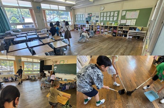 一生懸命にきれいに 3年生が、掃除の時間に黙々と頑張っていました。机を運んだり、床のゴミを集めたりと一生懸命にきれいにしていました。