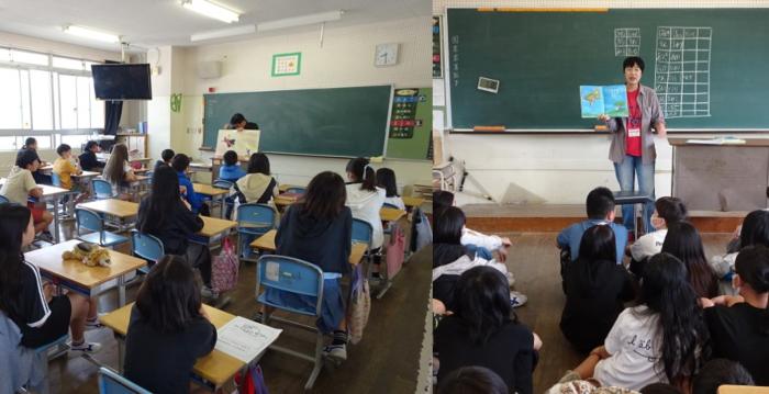 5枚じゃなく4枚もあります! 今日は江上ぶんたんの専門家であるJAながさき西海させぼ広域かんきつ部会から2名来校していただき、2年生が江上ぶんたんについて学びました。
