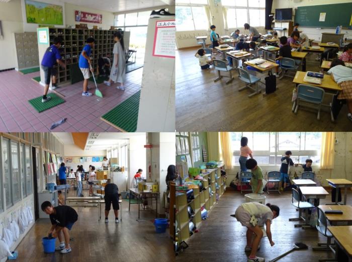 感謝の気持ちを込めて 明日は1学期終業式です。今日の5時間目は全校で大掃除を行いました。1学期使ったいろいろな場所を、感謝の気持ちを込めながら一生懸命に掃除する子…