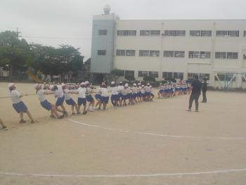 綱引き 5年生が綱引きの練習をしていました。各クラスごとに気合を入れて、その後、2クラスずつ対戦していってました。気合の入れ方で、勝敗が分かれていた…