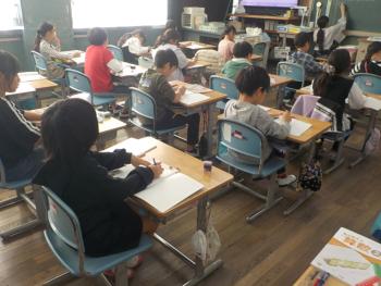 くわしく書こう 国語の研究授業を1年生が行っていました。作文を書こうということで、どの子も熱心に取り組んでいました。中には、一文を5つも6つも作っている子も…
