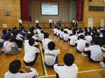生徒集会 火曜日に生徒集会がありました。専門委員長が各専門委員会で話し合った内容を全体に周知する集会です。前の月に取り組んだ活動の評価・反省と次の月…