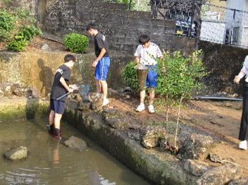 救出大作戦 学校管理員のKさんは、毎年、学校の校門近くにある池の掃除をしてくださいます。今年は、3年生の有志が汚れることをいとわず、手伝ってくれました…